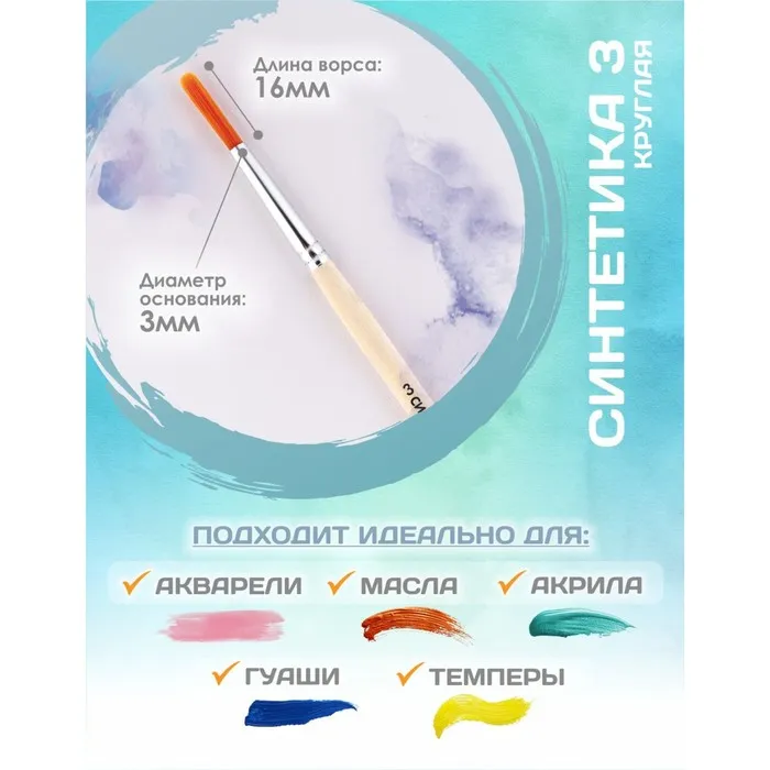Кисть для рисования, Синтетика Круглая № 3 (диаметр обоймы 3 мм; длина волоса 16 мм), деревянная ручка, Calligrata — Характеристики