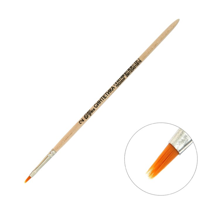Кисть для рисования, Синтетика Плоская № 2 (ширина обоймы 2 мм; длина волоса 6 мм), деревянная ручка, Calligrata — Характеристики