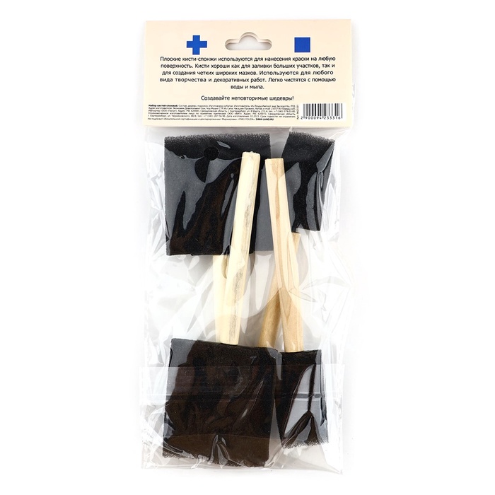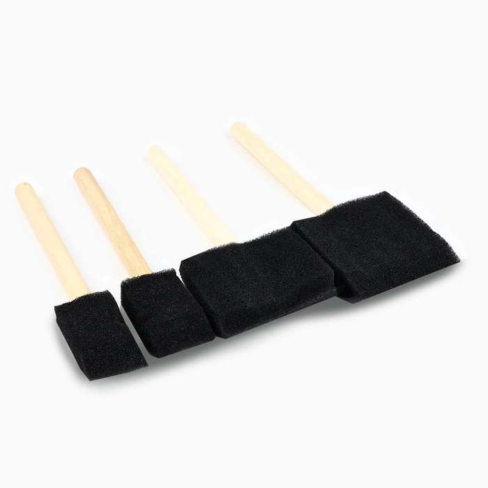 Кисть для рисования спонж набор 4 шт. «Создавай» плоские, деревянная ручка — Характеристики
