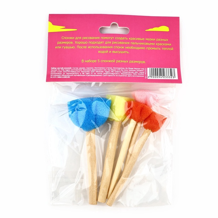Кисть для рисования спонж набор 5 шт. «Фрида» цветные, деревянная ручка — Характеристики