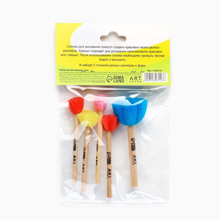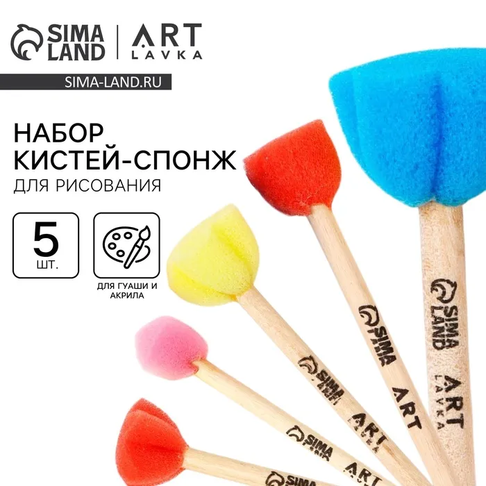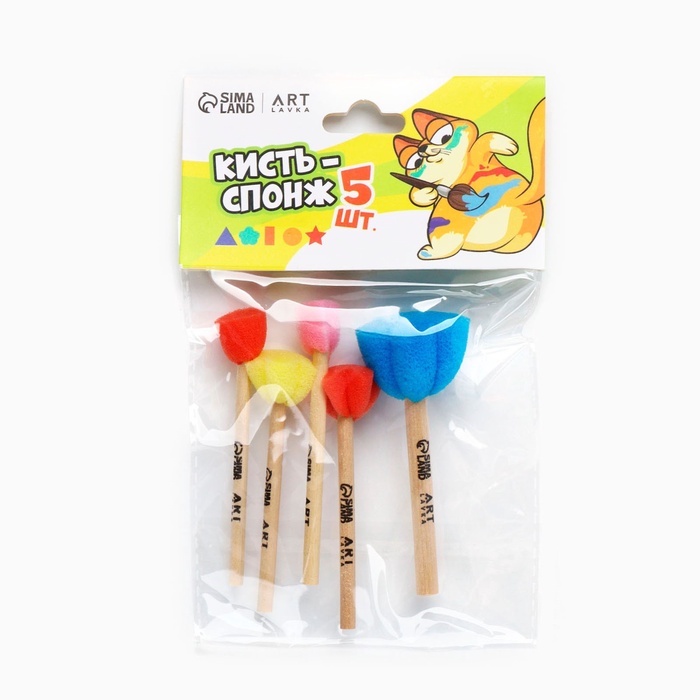Кисть для рисования спонж набор 5 штук, цветные, фигурные «Кот-Художник» — Характеристики