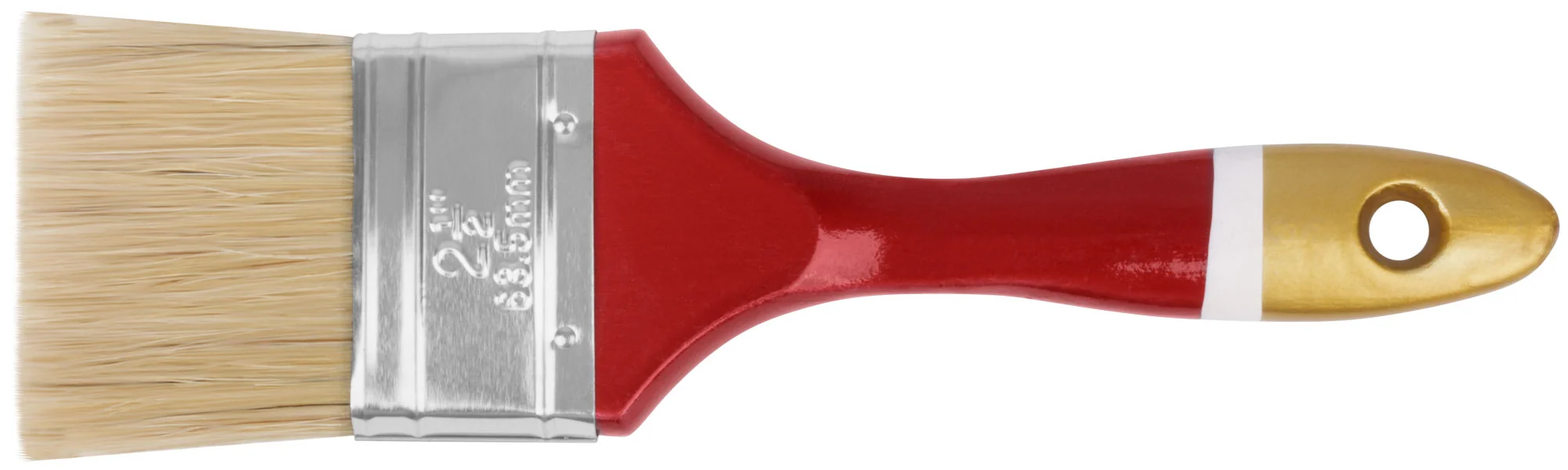 Кисть оснащена натуральной светлой щетиной, что способствует плавному и ровному нанесению краски. Деревянная ручка обеспечивает удобство и комфорт в использовании, снижая усталость при длительной работе.