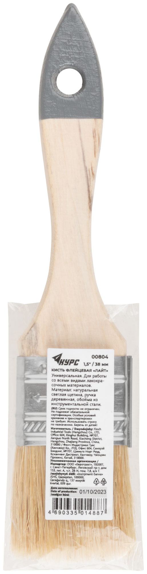 Выберите кисть флейцевую "Лайт" от бренда КУРС, чтобы обеспечить качественное и комфортное нанесение лакокрасочных материалов на любые поверхности.