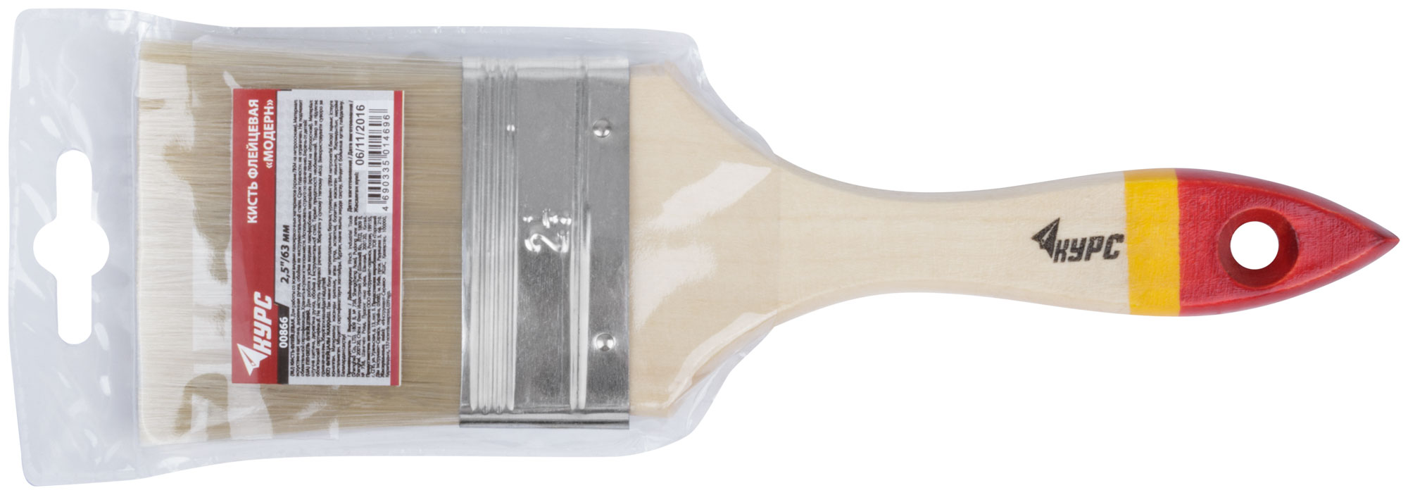 Кисть флейцевая "Модерн", иск. щетина, деревянная ручка 2,5" (63 мм)