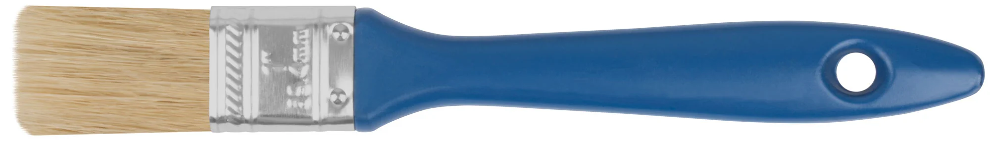 Кисть изготовлена с применением натуральной светлой щетины, что гарантирует долгий срок службы и отличную впитываемость краски. Пластиковая ручка обеспечивает легкость и удобство в использовании, снижая усталость даже при длительной работе.