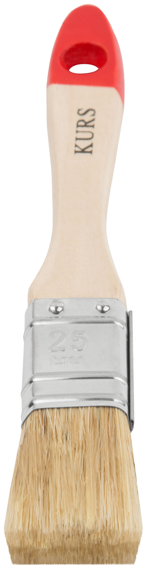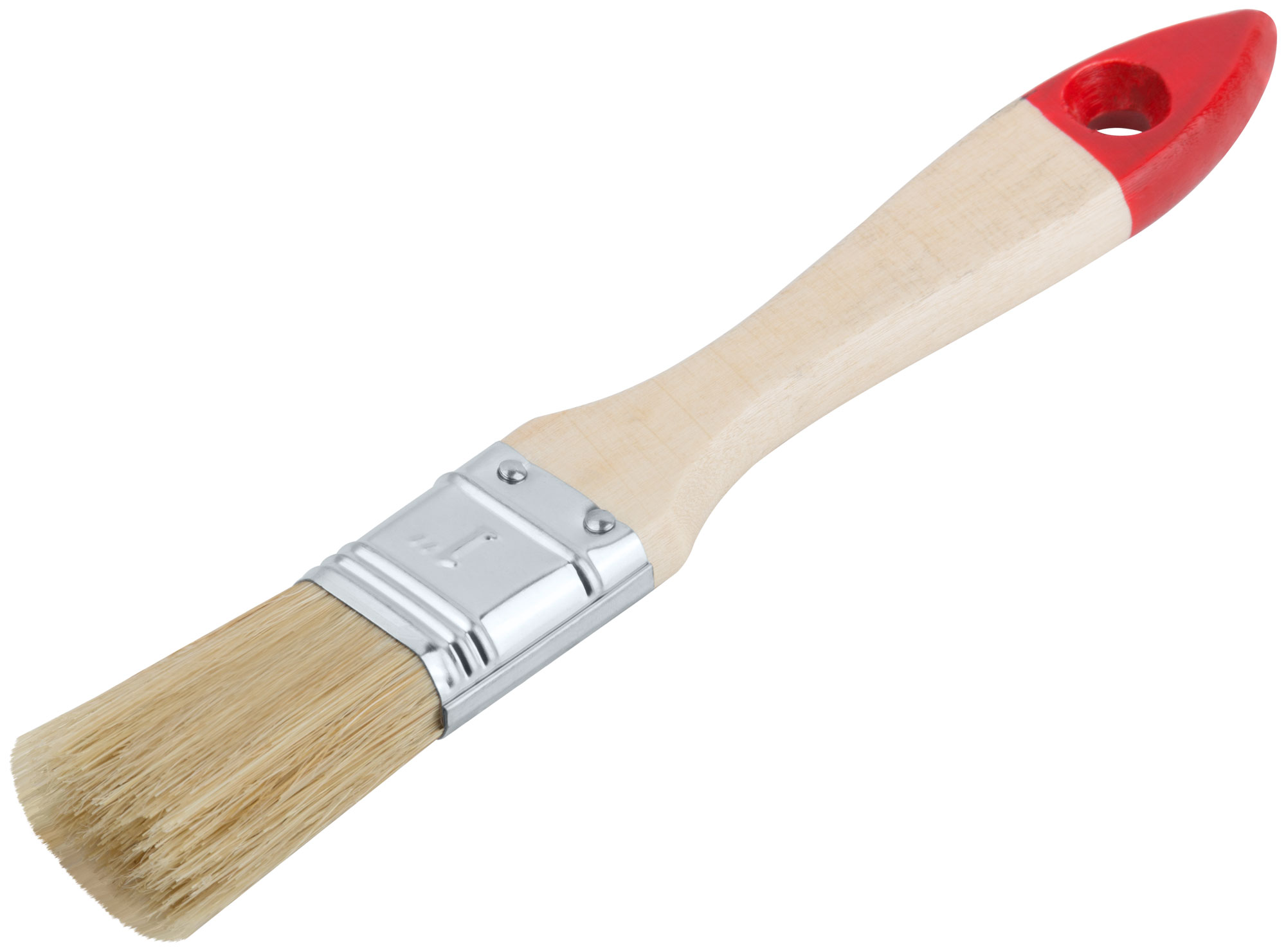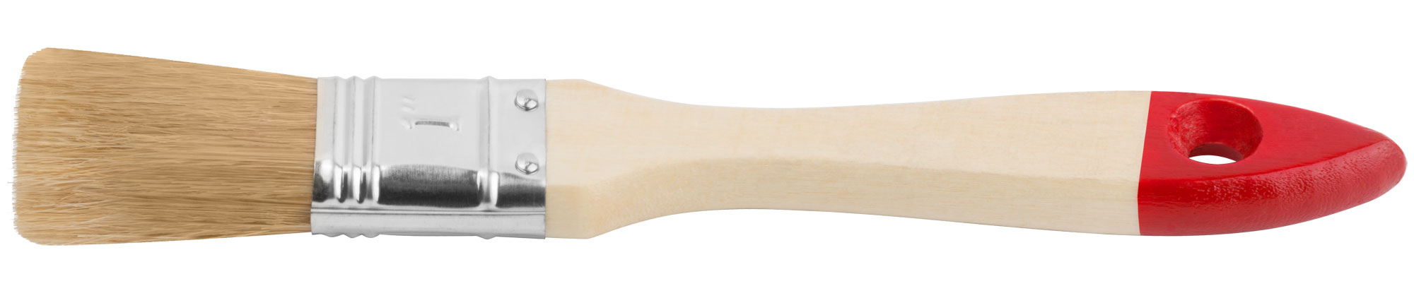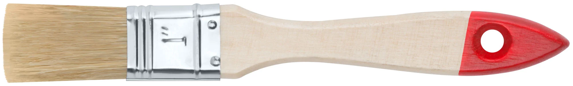 Кисть оснащена деревянной ручкой, которая обеспечивает удобный захват и контроль над процессом покраски. Натуральная светлая щетина способствует равномерному распределению краски, что делает её идеальной для различных типов лакокрасочных материалов.