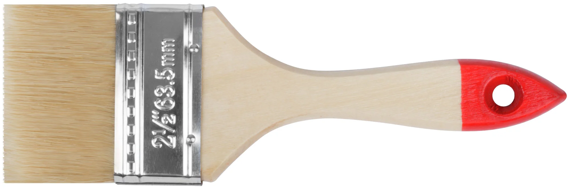 Кисть оснащена натуральной светлой щетиной, которая обеспечивает качественное нанесение краски, а деревянная ручка гарантирует комфортное использование на протяжении всего процесса работы.