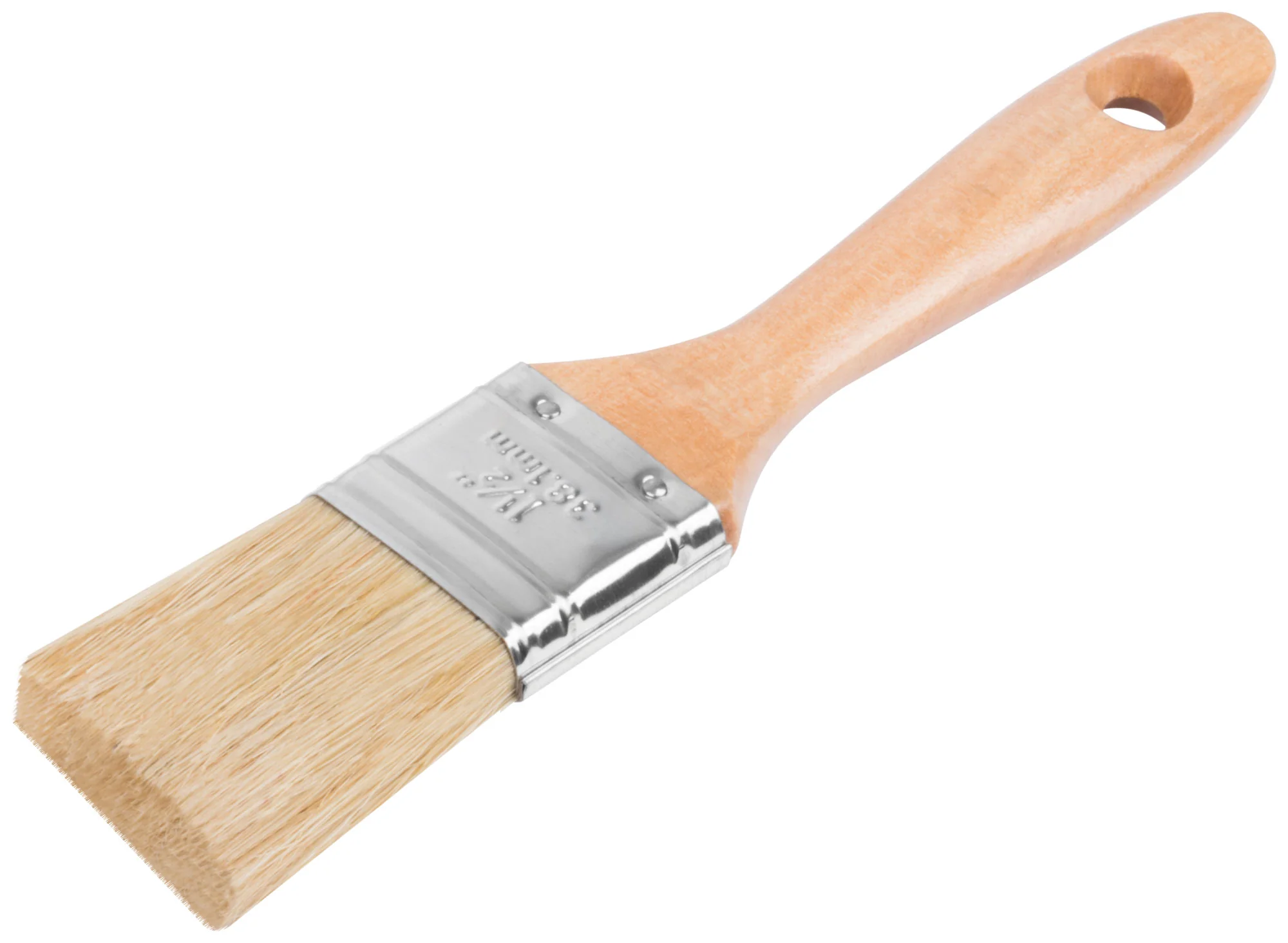 Кисть оснащена натуральной светлой щетиной, которая обеспечивает равномерное распределение краски и предотвращает образование полос. Деревянная ручка удобна в руке и способствует комфортной работе на протяжении длительного времени.