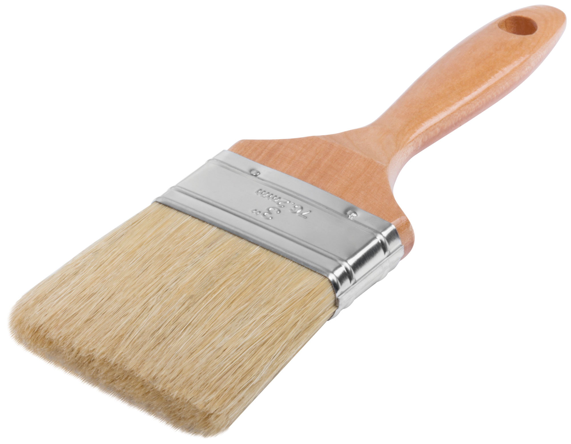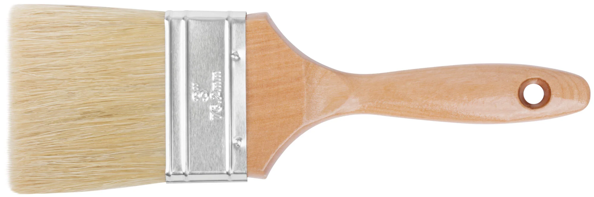 Кисть оснащена натуральной светлой щетиной, которая гарантирует качественное нанесение ЛКМ без разводов. Деревянная ручка обеспечивает комфортный захват и контроль во время работы, что особенно важно при длительном использовании.