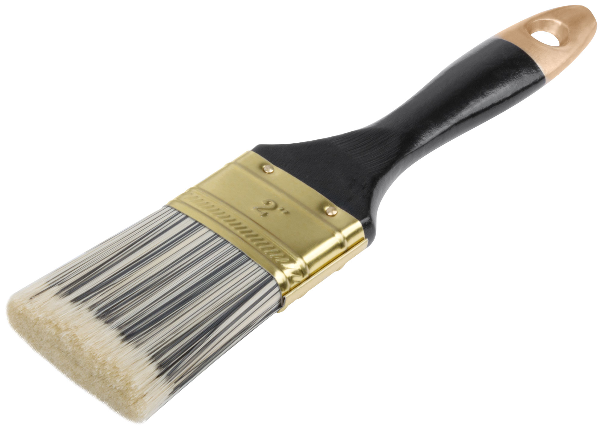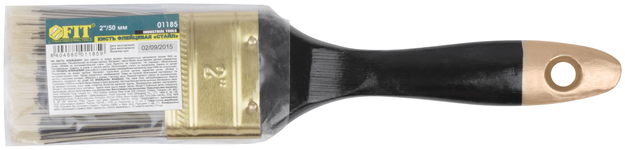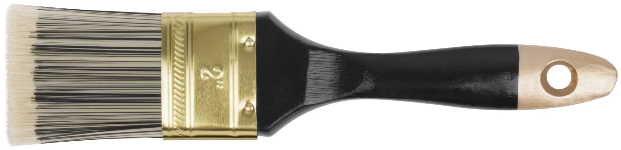 Кисть оснащена искусственной черно-белой щетиной, которая обеспечивает ровное нанесение краски, а деревянная ручка позволяет удобно удерживать инструмент даже при длительной работе. Типоразмер кисти составляет 2" (50 мм), что делает её универсальной для различных задач.