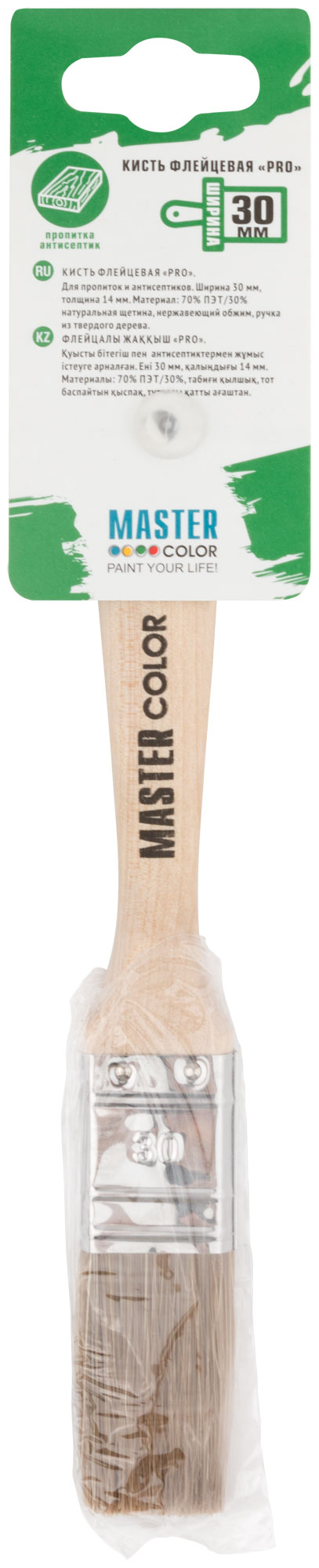 Кисть флейцевая от MASTER COLOR — незаменимый инструмент для мастеров, занимающихся нанесением лазурей, пропиток и антисептиков. Благодаря размеру 30 мм и качественной щетине, она идеально подходит для аккуратного и равномерного нанесения покрытий на различные поверхности.