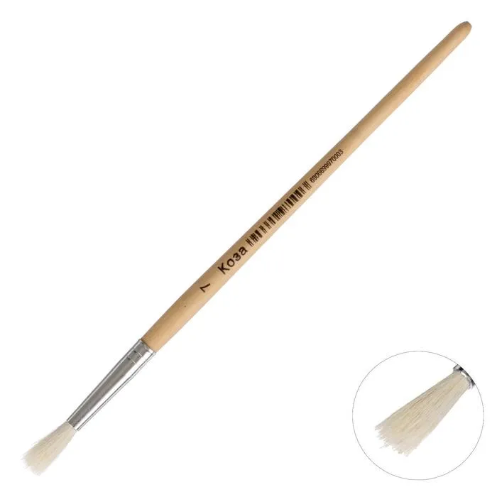 Кисть из волоса козы имеет длинный, мягкий и упругий ворс, хорошо держит краску.Кисть станет верным помощником начинающему художнику.Покупайте товары для учебы и детского творчества в нашем интернет-магазине!