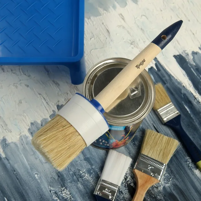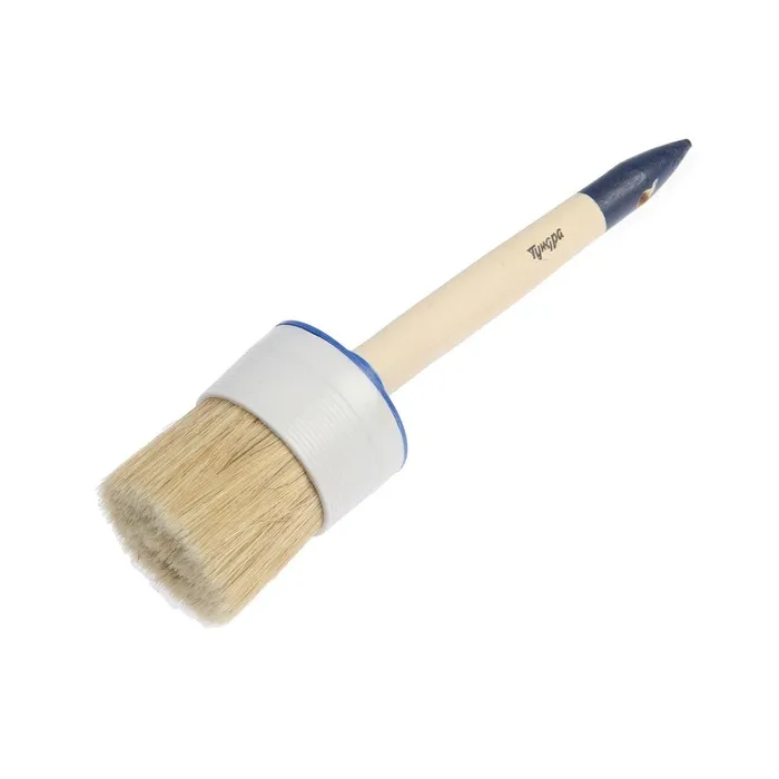 Круглая форма кисти подойдёт для окрашивания в труднодоступных местах, как углы, дверные проёмы и окна.