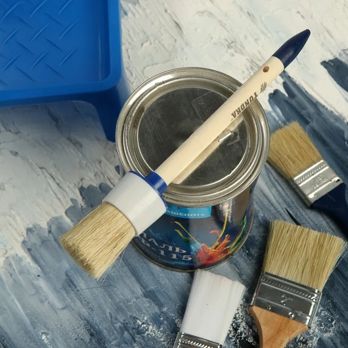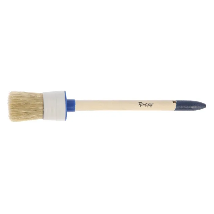 Круглая форма кисти подойдёт для окрашивания в труднодоступных местах, как углы, дверные проёмы и окна.