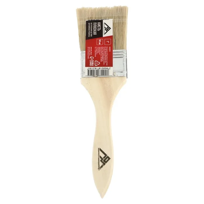 Кисть плоская ЛОМ, натуральная щетина, деревянная рукоятка, 2", 50 мм — Характеристики