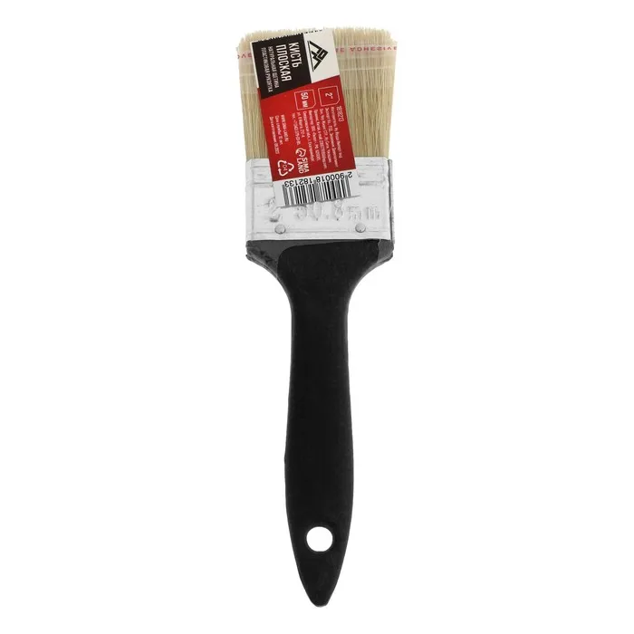 Кисть плоская ЛОМ, натуральная щетина, пластиковая рукоятка, 2", 50 мм — Характеристики