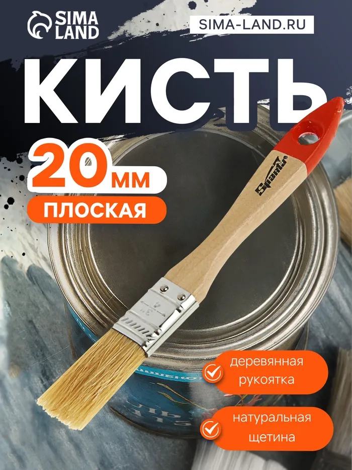Кисть плоская SPARTA Slimline, натуральная щетина, деревянная рукоятка 20 мм — Характеристики
