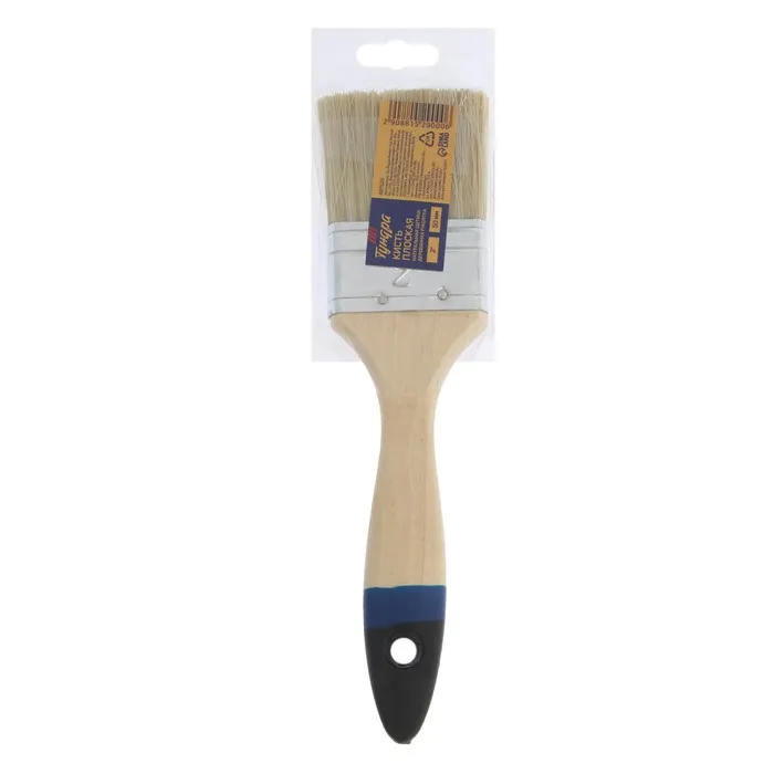 Кисть плоская ТУНДРА, натуральная щетина, деревянная ручка, 2", 50 мм — Характеристики