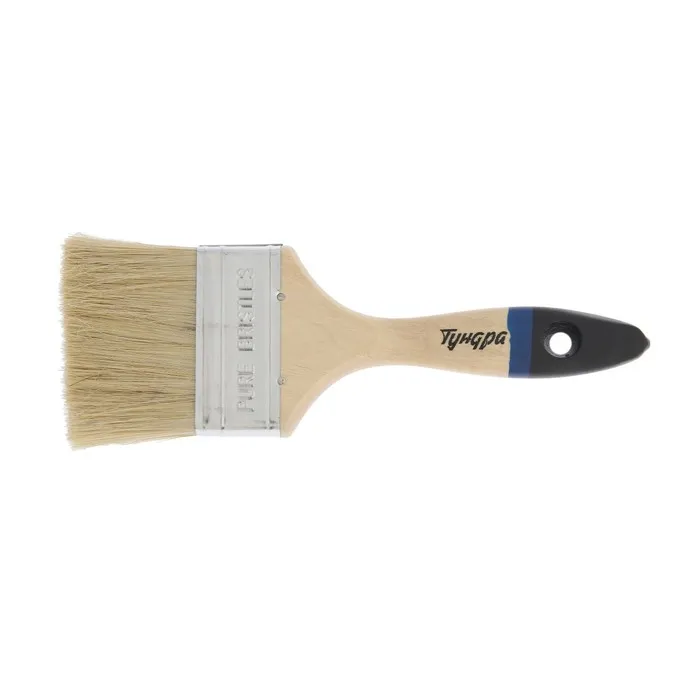 Кисть плоская ТУНДРА, натуральная щетина, деревянная рукоятка, 3", 75 мм — Характеристики