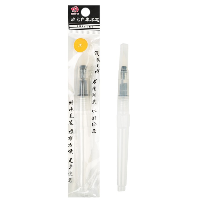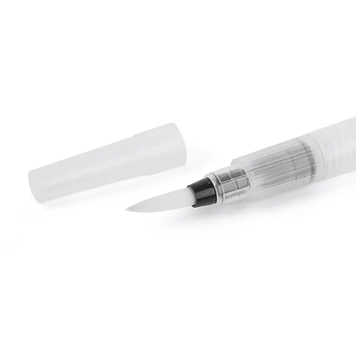 При нажатии на корпус щетки залитая в резервуар вода поступает к пишущему узлу. Кисть отлично подходит для работы с акварельными карандашами и водорастворимыми красками.