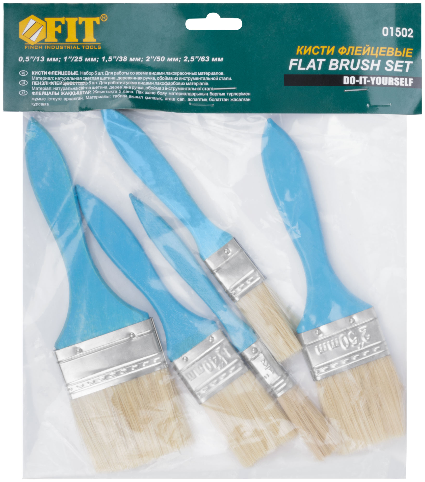 Благодаря разнообразию размеров — от 1/2" до 2,5" — набор подходит для выполнения как мелких, так и крупных работ. Вся продукция упакована в полиэтиленовый пакет с удобным картонным подвесом для хранения и транспортировки.