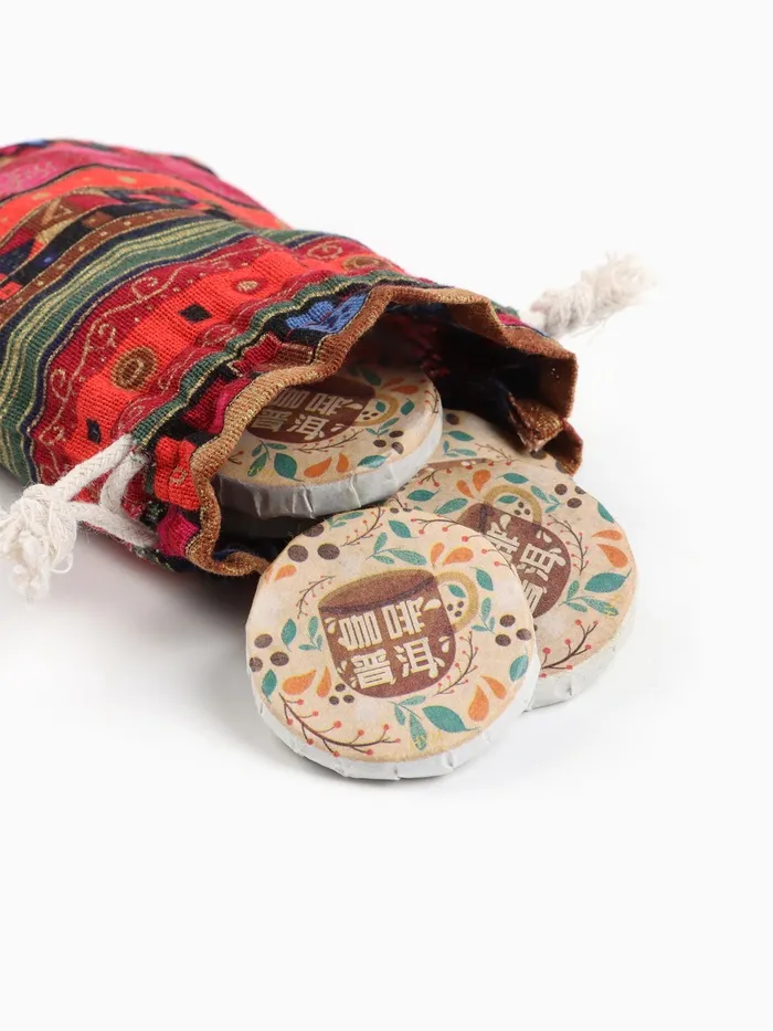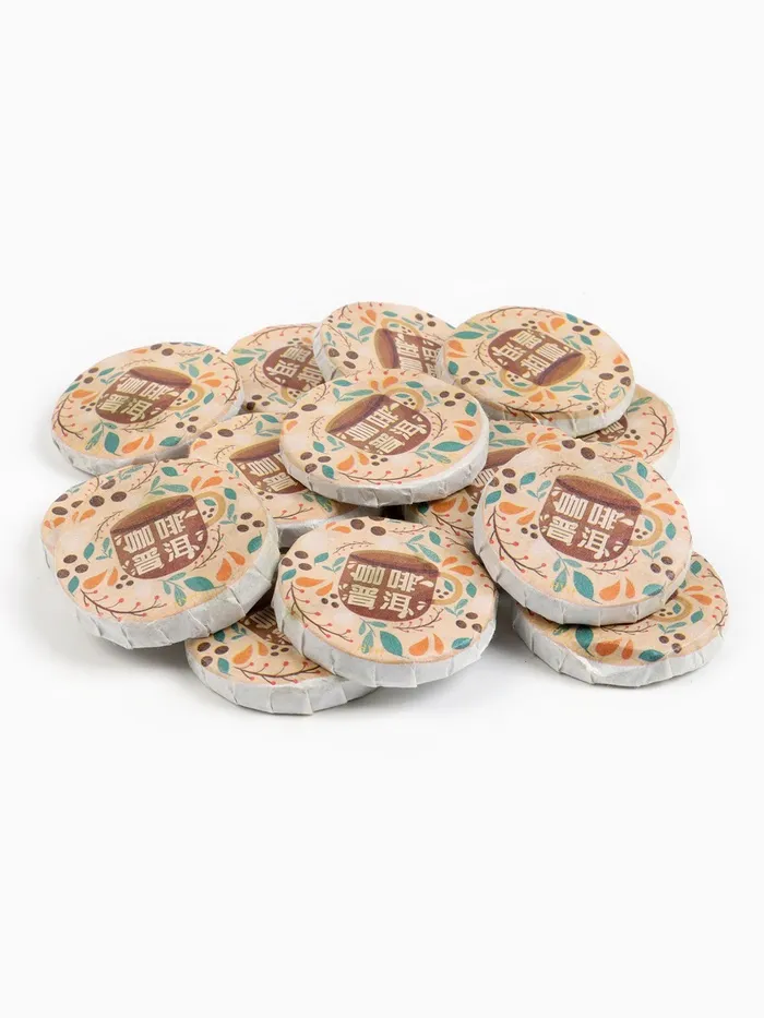 Листья Шу пуэра, собранные вручную, проходят процесс прессования и ферментации, что придает чаю характерные землистые и сладковатые ноты. В сочетании с ароматом кофе, который добавляется на этапе производства, создается коктейль из вкусов, который прекрасно подходит для утреннего чаепития или как завершение долгого дня.