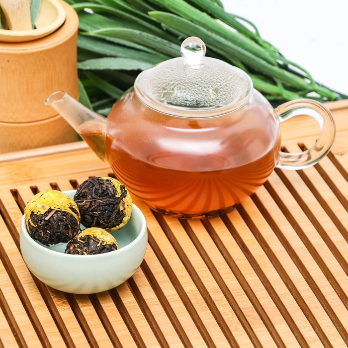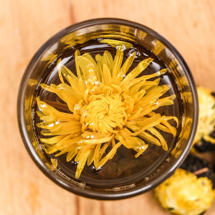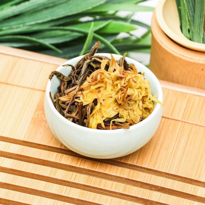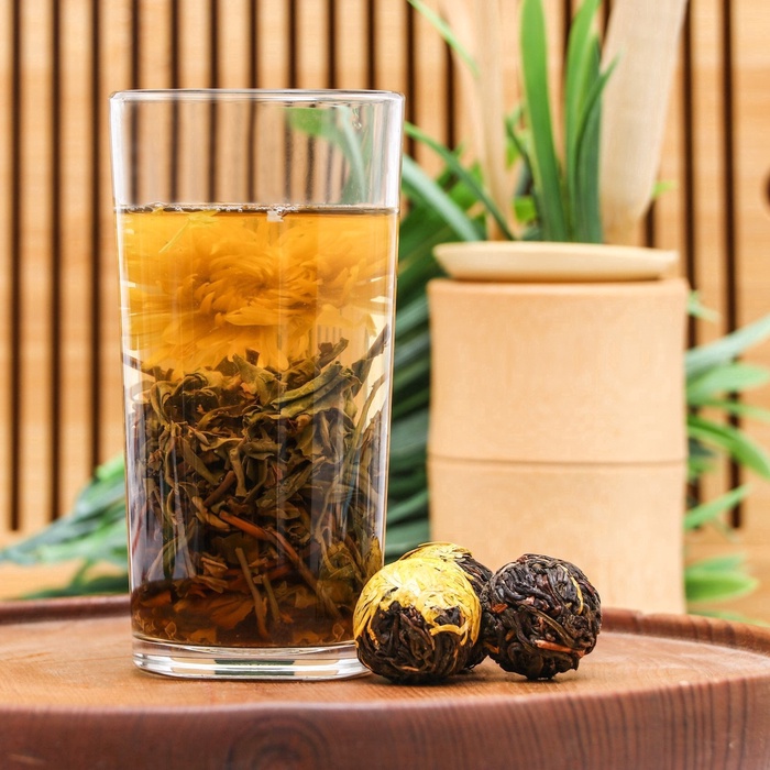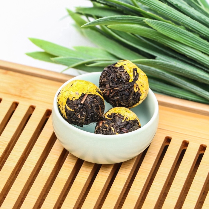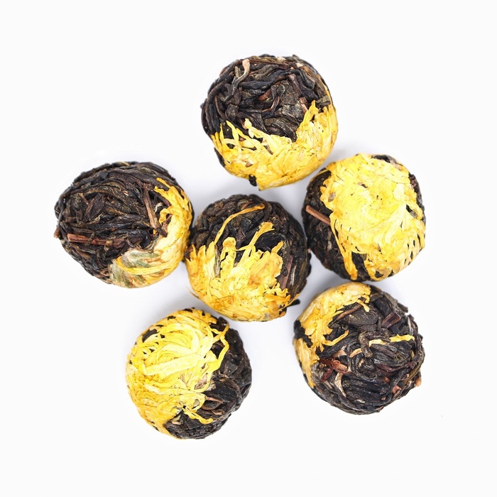 Наблюдайте, как в вашей чашке рождается солнечный цветок. Этот китайский связанный чай объединяет нежные листья зелёного чая и цельный бутон желтой хризантемы, скрученные вручную в изящную композицию. При заваривании она медленно раскрывается, превращая чаепитие в медитативное представление и даря напитку лёгкий, слегка травянистый вкус с тонкими цветочными нотками.