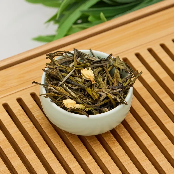 Китайский зеленый жасминовый чай "Жасминовые иглы" – это уникальный сорт чая, производимый из отборных молодых чайных листьев и нежных цветов жасмина. Листья и цветы проходят тщательный процесс сбора и обработки, чтобы сохранить их свежесть и аромат.