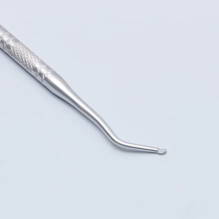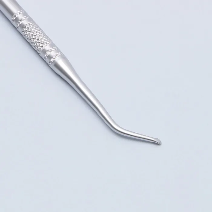 Кюретка выполнена из нержавеющей стали, что гарантирует долговечность и надежность. Такой материал предотвращает коррозию и позволяет сохранять стерильность. При корректировке вросших ногтей или подногтевых мозолей используется шабер, который облегчает процедуру.