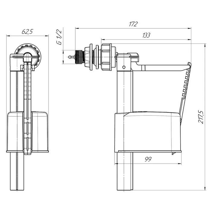 Боковой клапан для сливного бачка унитаза отличается компактными размерами, бесшумной работой и удобной регулировкой работы.
