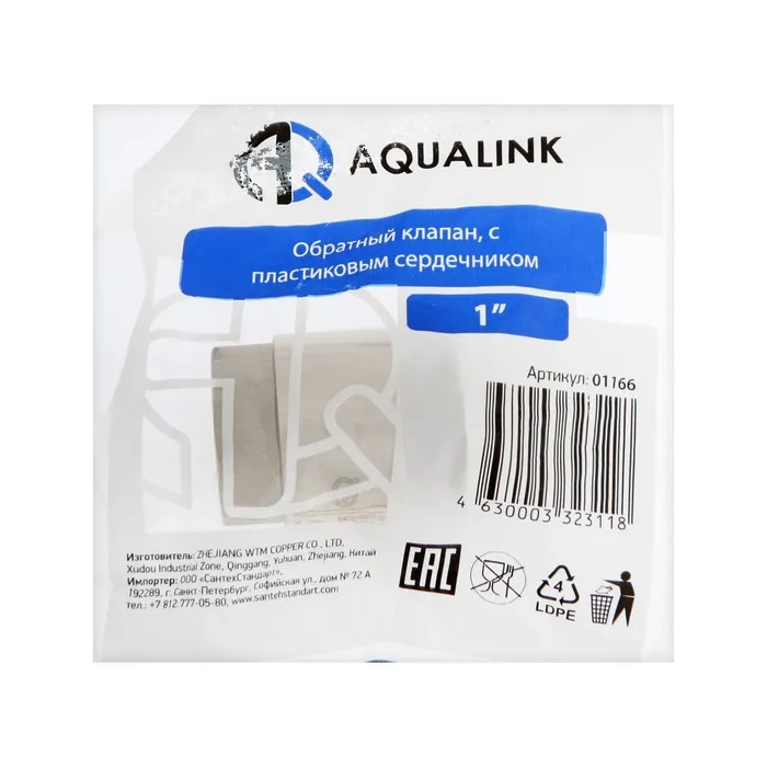 Клапан обратный AQUALINK, 1", внутренняя/внутренняя резьба, пластиковый сердечник — Характеристики