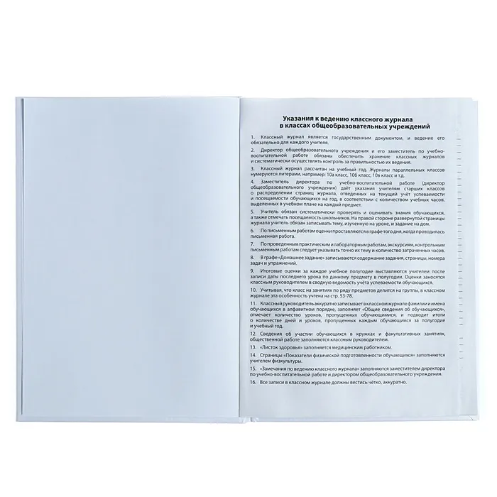 Классный журнал для 1-11 классов А4, 96 листов, твёрдая обложка, белый блок — Характеристики