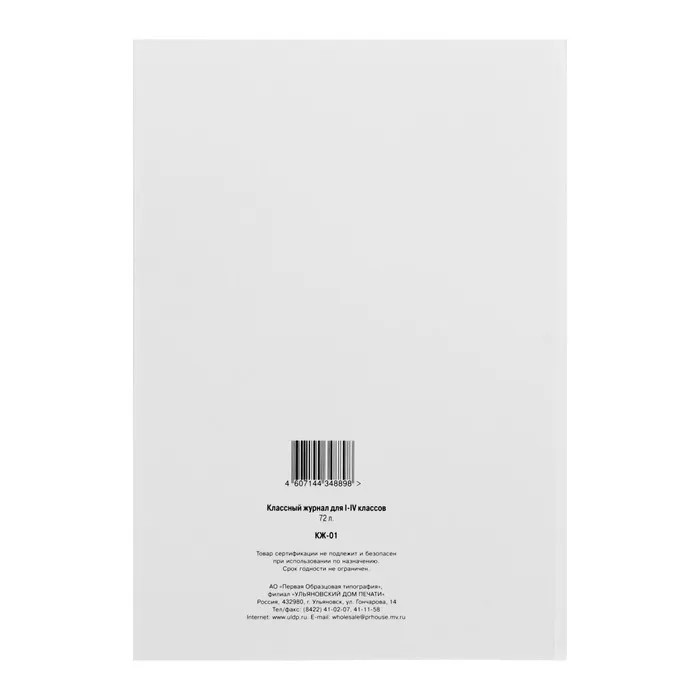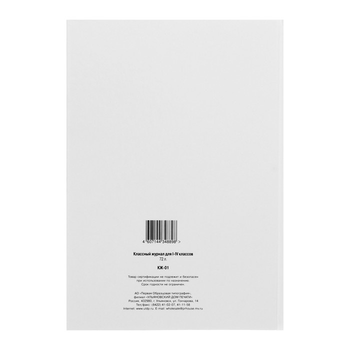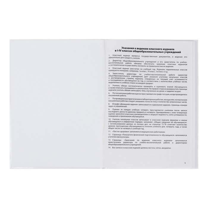 Классный журнал для 1-4 классов А4, 96 листов, твёрдая обложка, белый блок — Характеристики