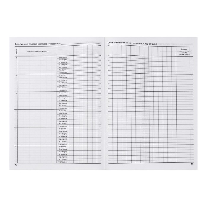 Классный журнал для 1-4 классов А4, 128 страниц, твердая ламинированная обложка, блок офсет 65г/м2