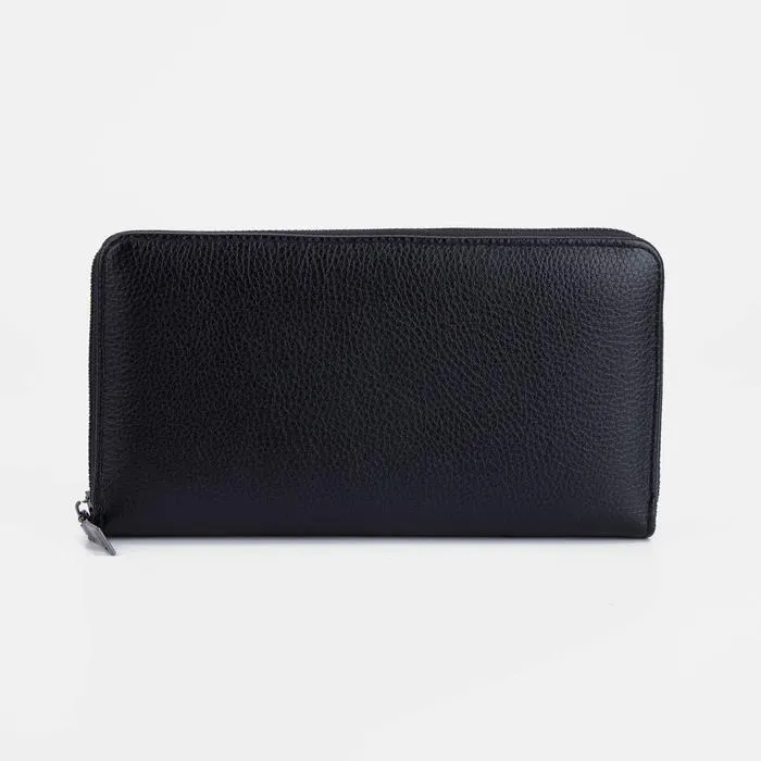 Чёрный мужской клатч из искусственной кожи — лаконичный аксессуар для вечернего выхода или деловых встреч. Два отделения с молнией помогают организовать документы и мелочи, сохраняя минималистичный внешний вид. Большой размер удобен для хранения смартфона и бумажника.