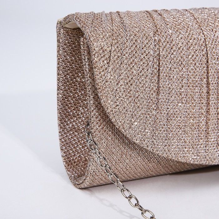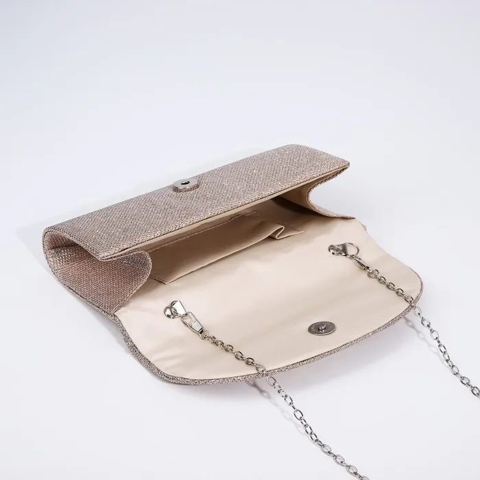 Клатч женский, на магните, с длинной цепочкой, блестящий, цвет золотой — Характеристики