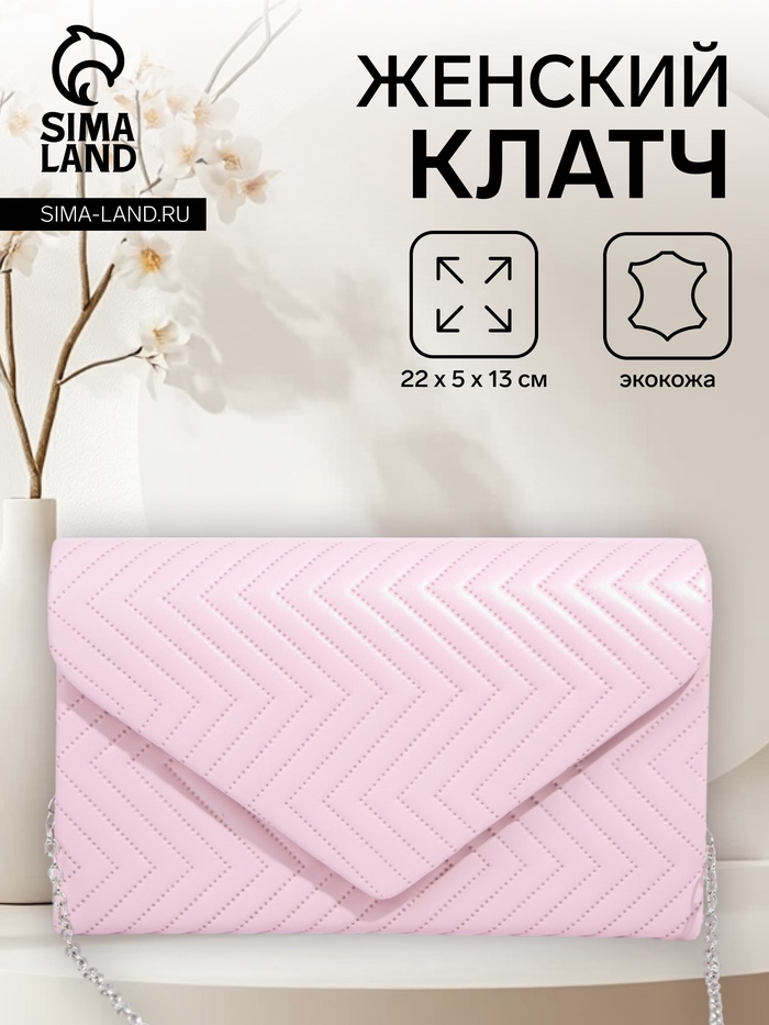 Клатч женский, на магните, с длинной цепочкой, розовый — Характеристики