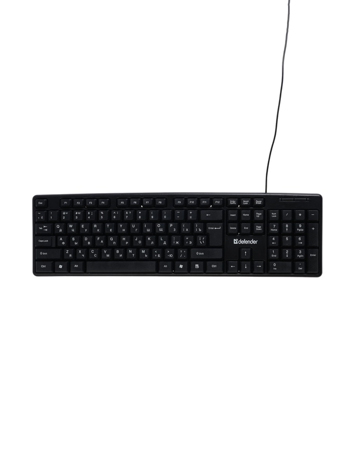 Проводная клавиатура Defender Element HB‑520 представляет собой надёжное и удобное решение для дома, офиса или повседневной работы за компьютером. Благодаря классической полноразмерной раскладке и простому USB‑подключению она отлично справляется с вводом текста, навигацией и базовыми задачами без лишних сложностей. Черный корпус из прочного пластика органично вписывается в любой компьютерный рабочий стол, а мембранный механизм клавиш обеспечивает тихую и комфортную печать с приятным откликом.