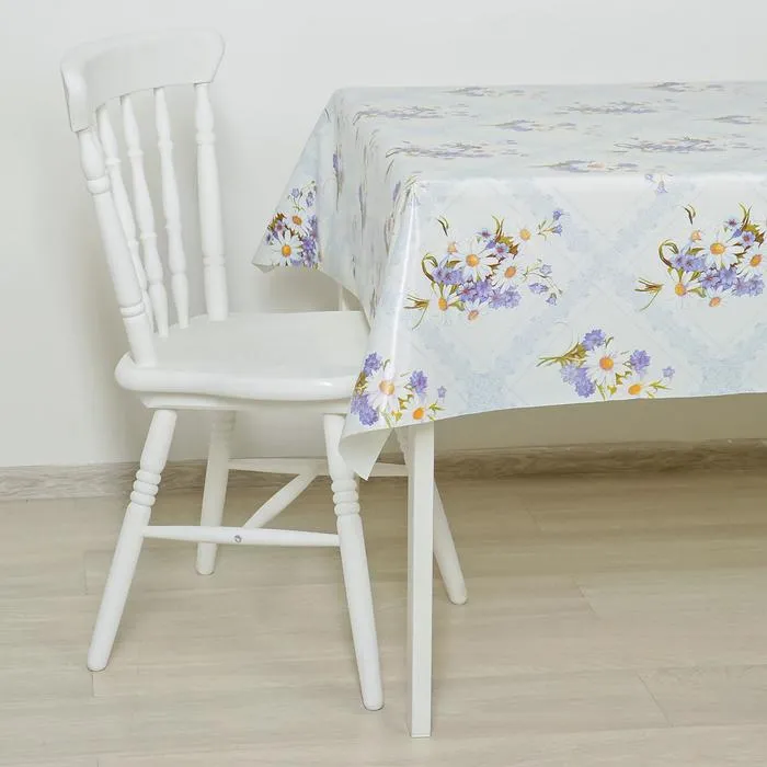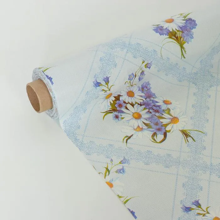 Клеенка столовая на нетканой основе «Букет ромашек», ширина 125 см, рулон 25 м, голубой — Характеристики