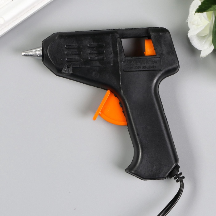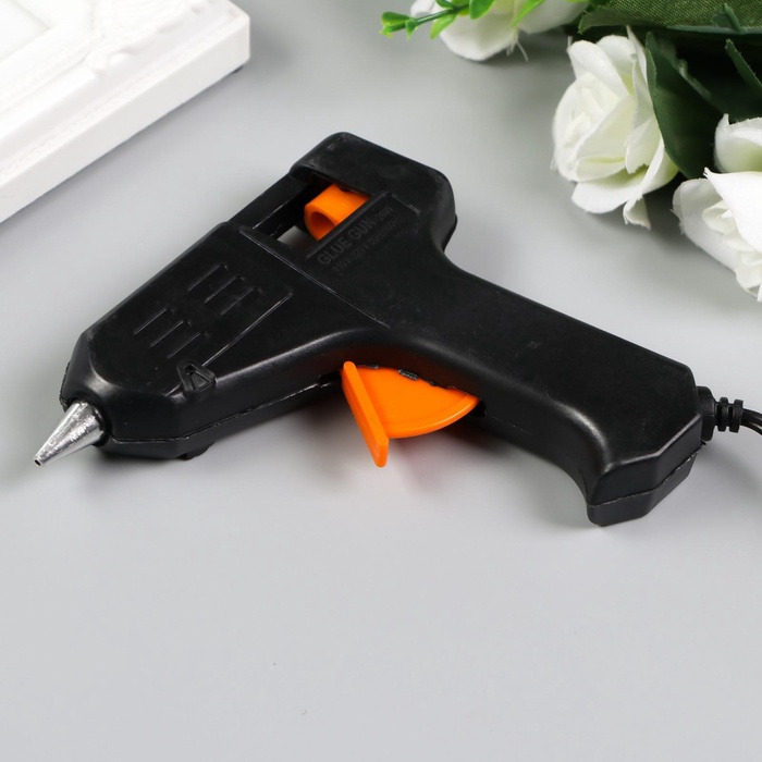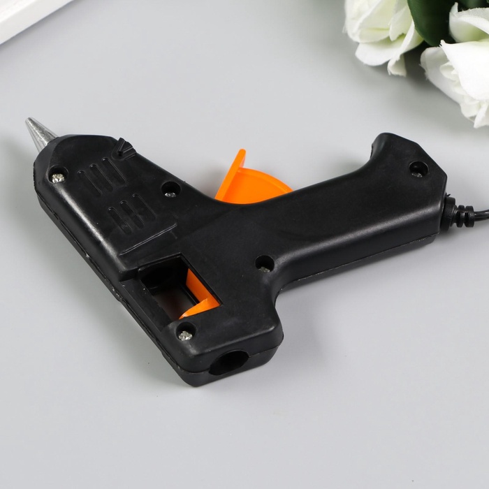 Клеевой пистолет для творчества не рассчитан на долгие работы. Подходит для приклеивания декора, маленьких деталей, склеивания бумаги. Рекомендуем держать его включённым максимум 3–5 минут, затем выключать до полного остывания. Для долгих работ лучше использовать профессиональный клеевой пистолет.