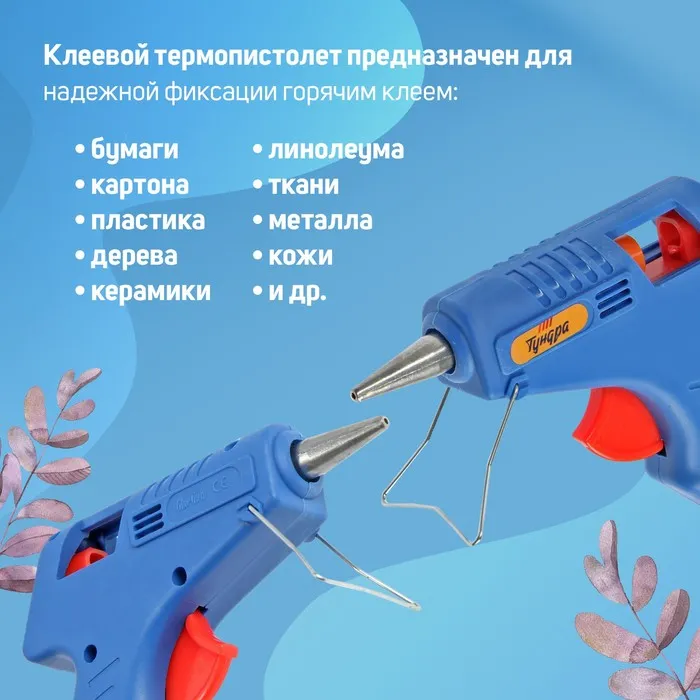Клеевой пистолет ТУНДРА предназначен для склеивания различных материалов горячим клеем. Инструмент имеет широкую сферу применения.