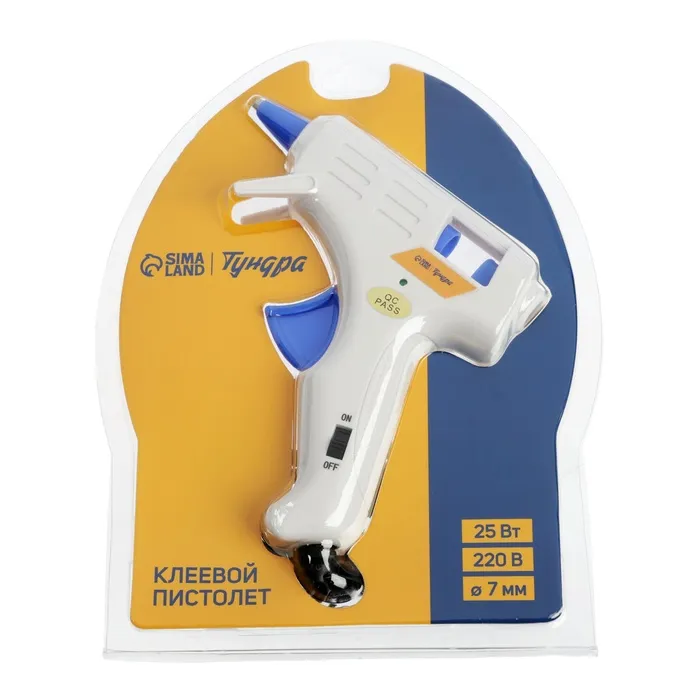 Клеевой пистолет ТУНДРА, 25 Вт, 220 В, эргономичная рукоятка, антикапля, шнур 1.3 м, 7 мм — Характеристики