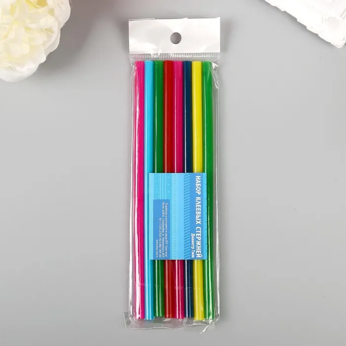 Клеевые стержни для клеевого пистолета "Разноцветный блеск" 7ммх18 см (набор 6 шт)