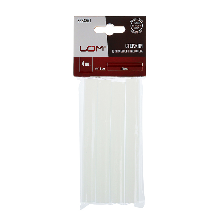 Клеевые стержни ЛОМ, 11×100 мм, 4 шт. — Характеристики