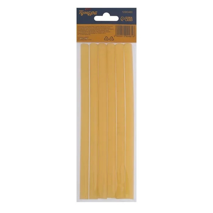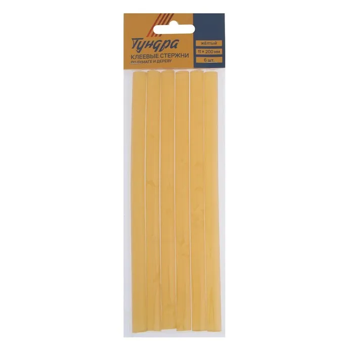 Клеевые стержни ТУНДРА, 11×200 мм, желтые (по бумаге и дереву), 6 шт. — Характеристики