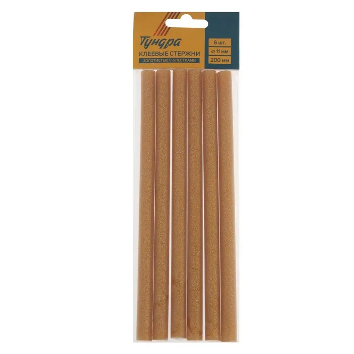Клеевые стержни ТУНДРА, 11×200 мм, золотистые с блестками, 6 шт. — Характеристики