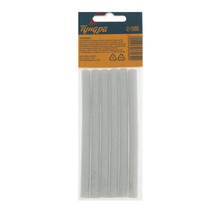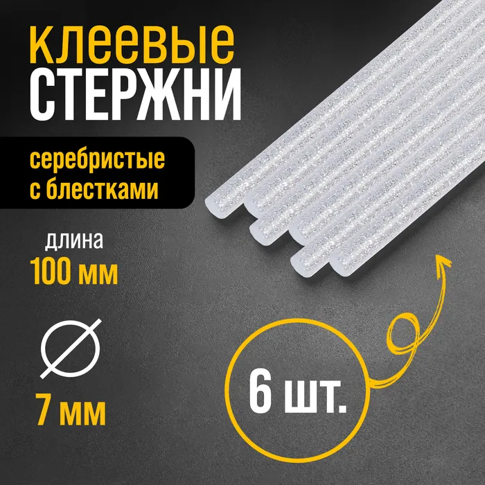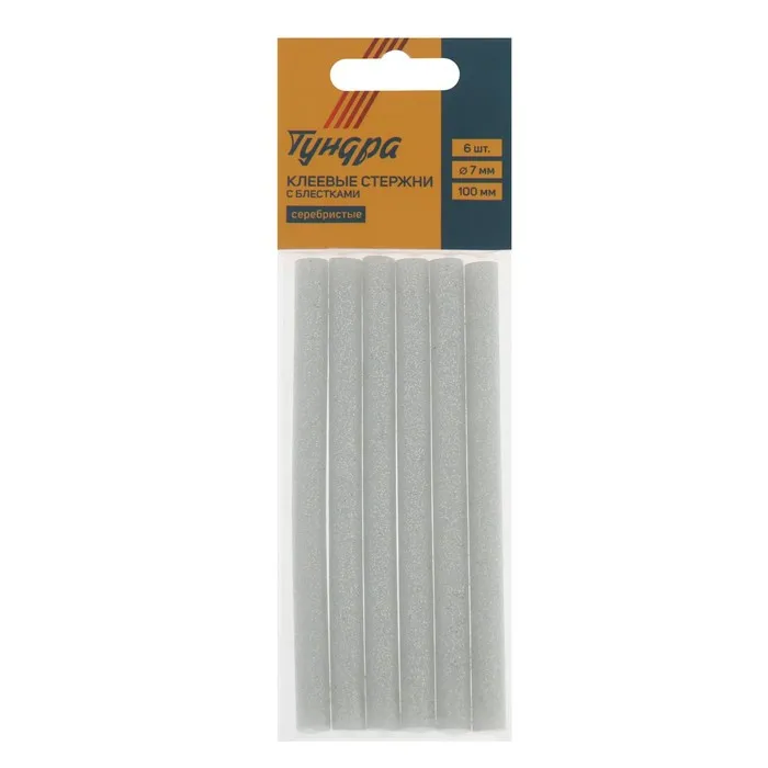 Клеевые стержни ТУНДРА, 7×100 мм, серебристые с блестками, 6 шт. — Характеристики