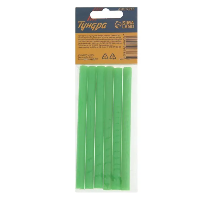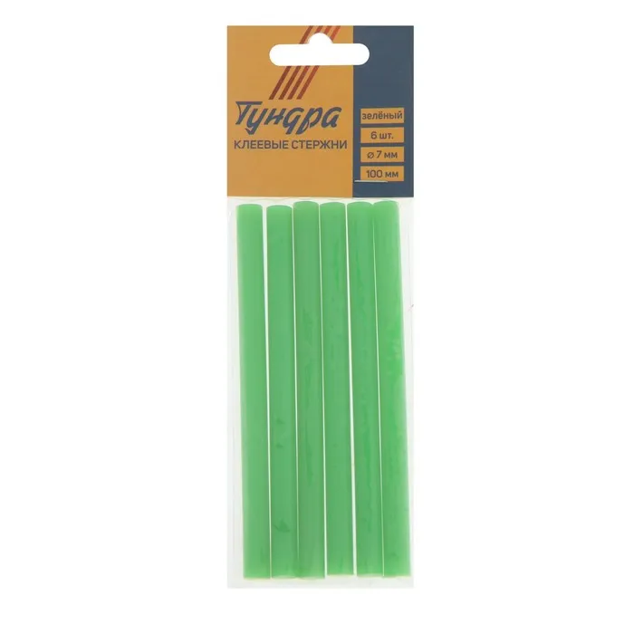 Клеевые стержни ТУНДРА, 7×100 мм, зеленые, 6 шт. — Характеристики