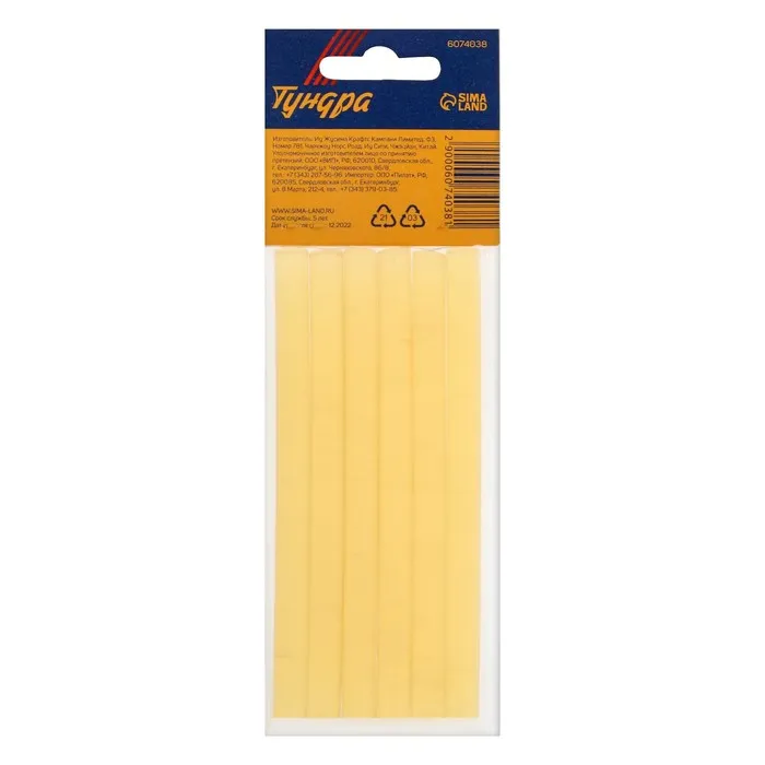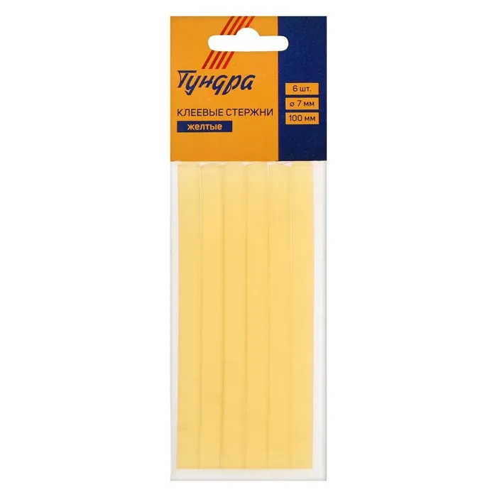 Клеевые стержни ТУНДРА, 7×100 мм, желтые, 6 шт. — Характеристики