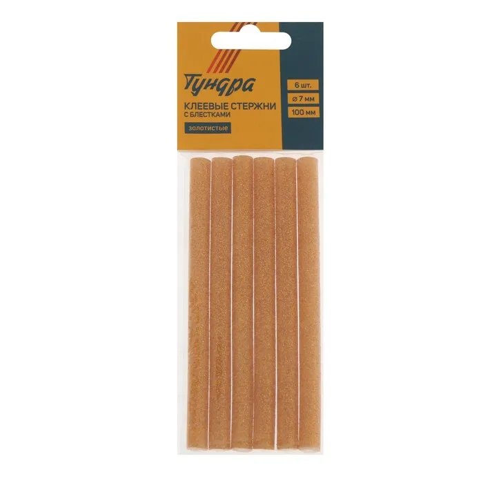 Клеевые стержни ТУНДРА, 7×100 мм, золотистые с блестками, 6 шт. — Характеристики